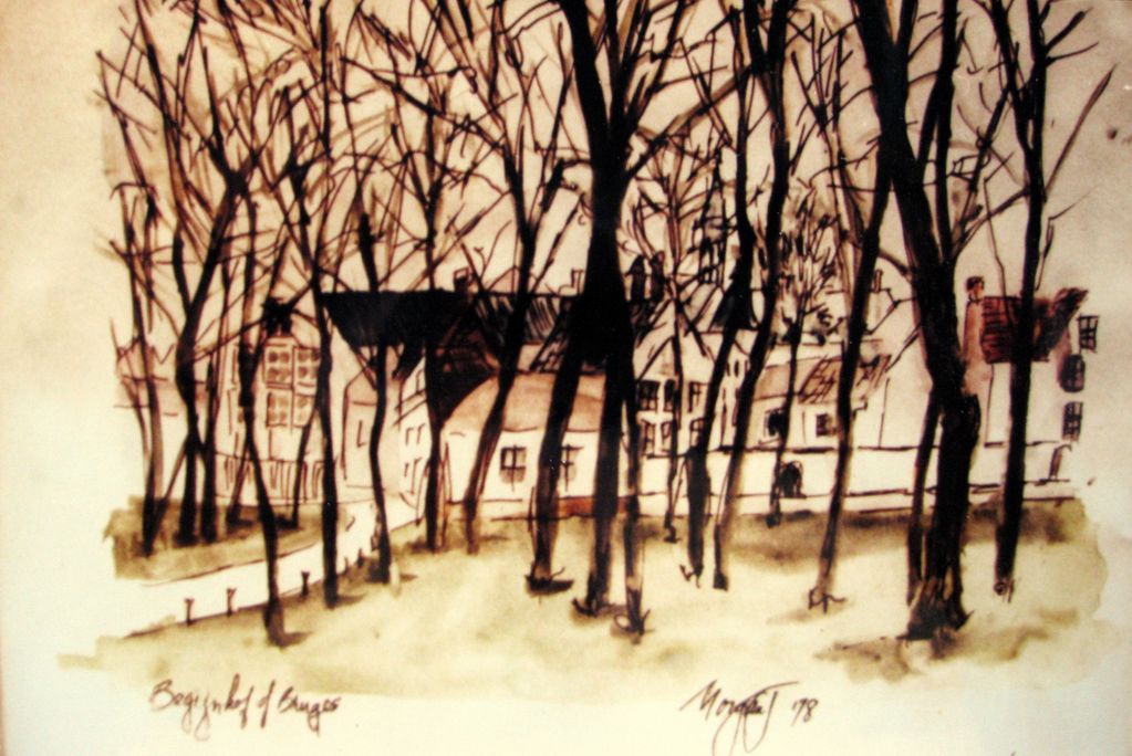 Begijnhof of Bruges, 1978, 8x10" w/c & ink