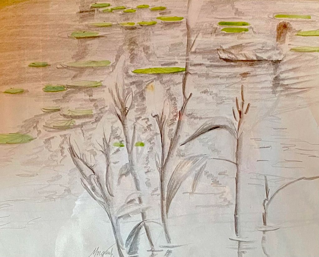 Duck and Lily Pads, 1977, 11x14" pencil & w/c